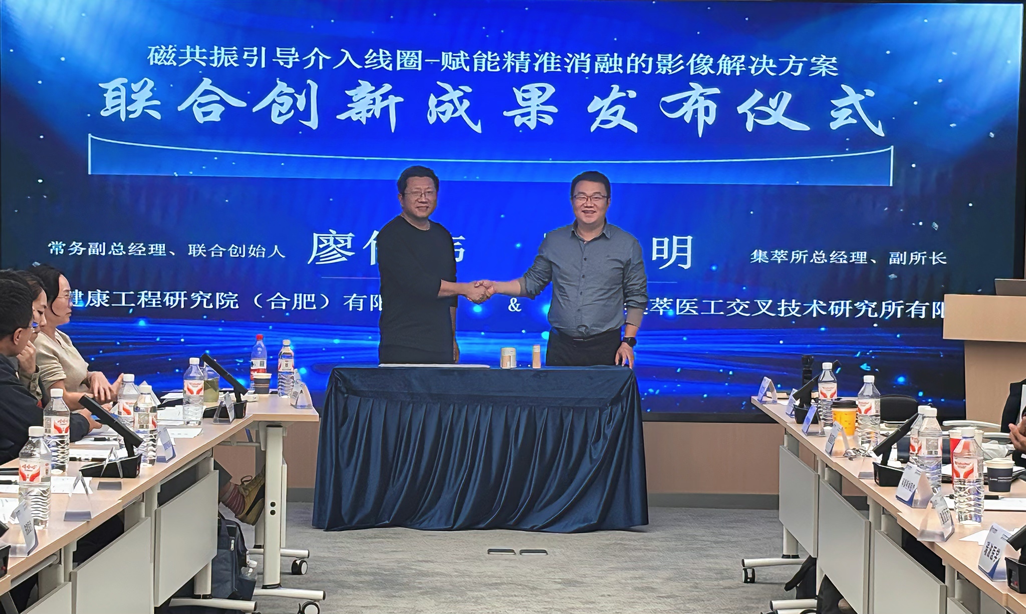 沙龙迎来一项重磅发布——“磁共振引导介入线圈-赋能精准消融的影像解决方案联合创新成果发布仪式。医工院副院长、集萃医工交叉所副所长屠小明与中加健康工程研究院常务副总廖伟伟共同见证了这一医工交叉的典范成果。